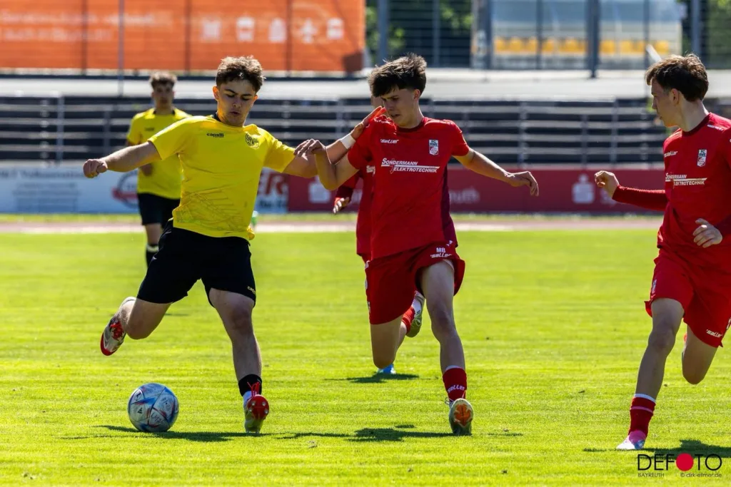 Die kurzzeitige Verunsicherung im Team legte sich aber, als wiederum Nick Karnitzschky auf 3:1 erhöhte (32.). Bis zum Halbzeitpfiff stabilisierte sich unsere U17 nach der notwendigen taktischen Umstellung wieder und ließ Erfurt trotz Unterzahl nicht zur Entfaltung kommen.