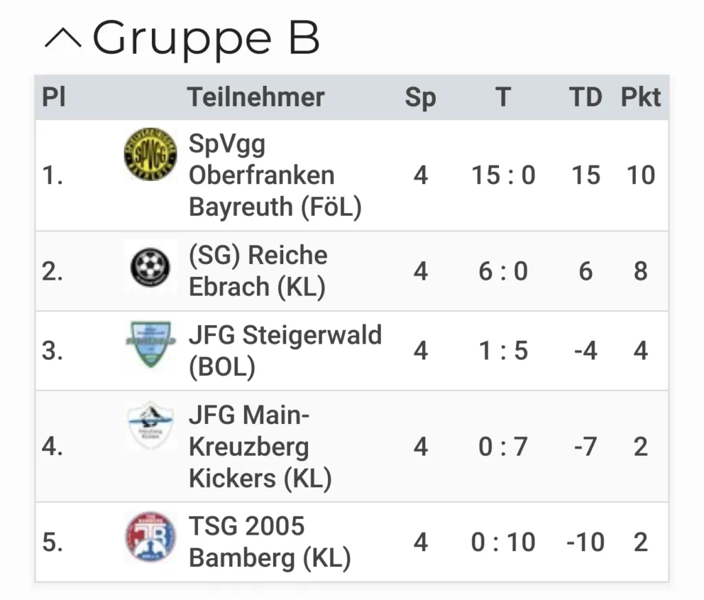 Für die SpVgg Bayreuth ging bei diesem Turnier die U12 an den Start, die ihre Sache richtig gut machte und ohne Gegentor mit einen Torverhältnis von 15:0 ungeschlagen in die KO-Spiele einzog.
