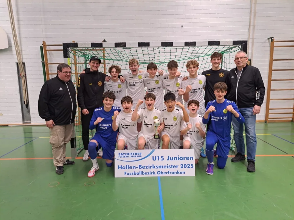 Unsere U15 sicherte sich am 26. Januar den Titel des Bezirksmeisters von Oberfranken und qualifizierte sich damit für die Bayerische Meisterschaft in Bad Reichenhall am 8. Februar. Dabei wurde unsere Mannschaft von der Stimmung getragen, die nach der Aufholjagd in der Gruppenphase entstand, wo wir einen 0:2 Rückstand noch in ein 2:2 drehen konnten.