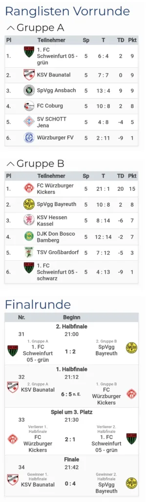 Im kleinen Finale um Platz 3 bezwang der FC Würzburger Kickers den Gastgeber aus Schweinfurt mit 2:1 und konnte sich somit einen Platz auf dem Podum sichern.