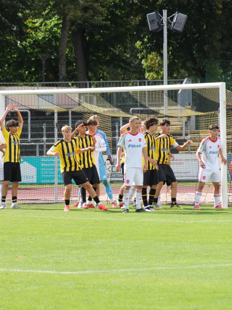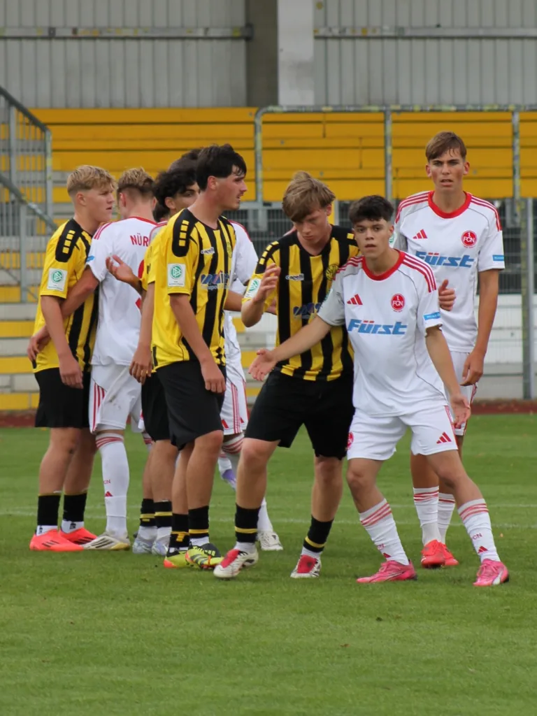 In der 24. Spielminute war es dann ein unglücklicher Ballverlust im Mittelfeld, den die Nürnberger schnell über die Seite ausspielten und anschließend den Ball gefährlich in den 16er spielten und im Abschluss dem starken Keeper Luca Kuchenbaur keine Chance ließen.