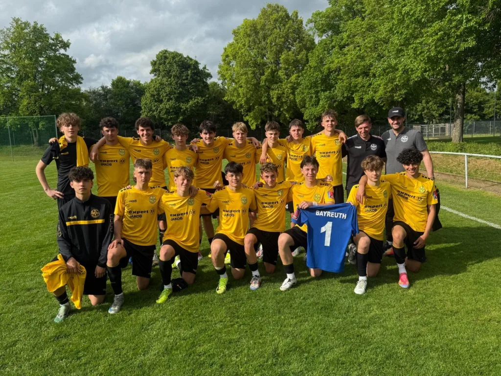Überschattet war die Begegnung von zwei schweren Verletzungen. Nach einer Viertelstunde musste unsere Keeper Luca Kuchenbauer, aufgrund eines Zusammenpralls mit einem gegnerischen Stürmer mit Verdacht auch Gehirnerschütterung ins örtliche Krankenhaus, wo sich der Verdacht auch bestätigte. Mittlerweile ist er auf dem Weg der Besserung. Die Wechselbank der Bayreuther war zwar prall gefüllt, nur ein Ersatztorwart war nicht dabei. Der Offensivspieler Viktor Dermer war es dann, der von nun an den Kasten sauber hielt.