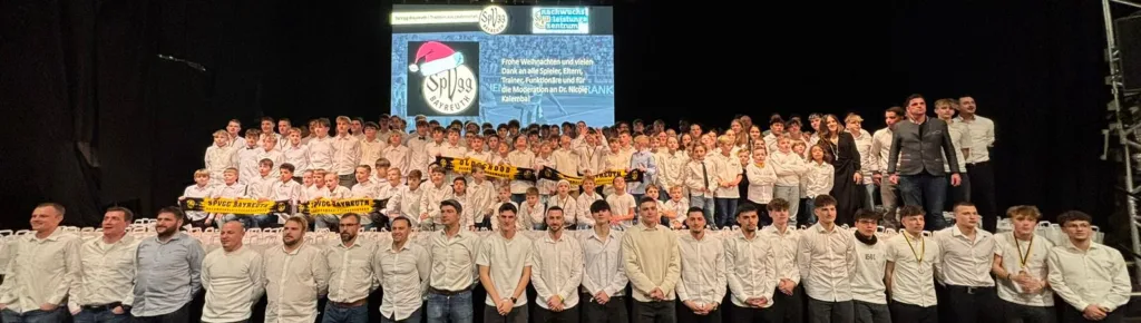 Am Samstag, den 14. Dezember 2024, fand zum zweiten Mal in der Geschichte der SpVgg Bayreuth eine große Weihnachtsfeier mit allen Jugendmannschaften statt. Im festlich geschmückten Reichshof in Bayreuth versammelten sich Spielerinnen und Spieler von der U11 bis zur U21, des Inklusionsteams sowie das Team der U15 Mädels, um gemeinsam das erfolgreiche Jahr 2024 zu feiern.