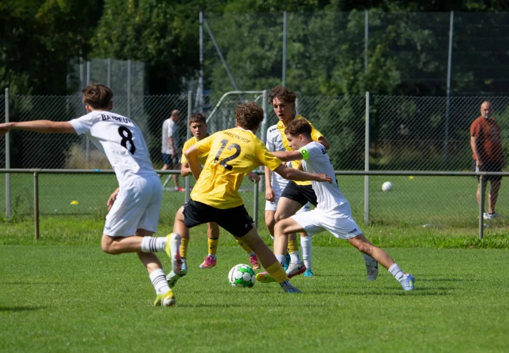 Unsere U15 der SpVgg Bayreuth zeigte beim Testspiel gegen die U17 der JFG Stiftland eine spielerisch starke Leistung und trennte sich am Ende mit einem 1:1-Unentschieden – ein Ergebnis, das dem Spielverlauf nicht gerecht wurde. Nach einem verhaltenen Beginn übernahm unsere Mannschaft schnell die Kontrolle und dominierte über weite Strecken das Geschehen – insbesondere im Zentrum überzeugten Weimer und Schmida mit starken Kombinationen. In der Defensive agierten Loh und Bartl souverän im Aufbau, während Schmida als auffälligster Spieler auf dem Platz immer wieder für Gefahr sorgte. Lediglich im letzten Drittel fehlte es an Durchschlagskraft: Zu viele einfache Ballverluste und ungenutzte Eins-gegen-eins-Situationen verhinderten eine frühe Führung.